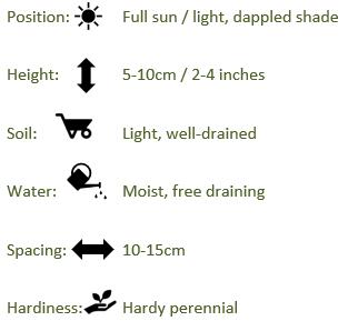 As a guide to the number of plants needed to cover the required area – 50 plants will cover 1 square meter if they are placed 15cm (6”) apart.