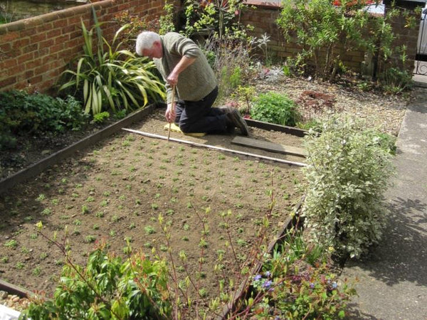 In addition to pressing down the plants periodically, we recommend applying a top dressing in the Spring or Autumn to help cover any shoots that have yet to root. The top dressing can be a mixture of sieved soil and fertiliser or compost, placed carefully around the plants taking care not to smother them.
